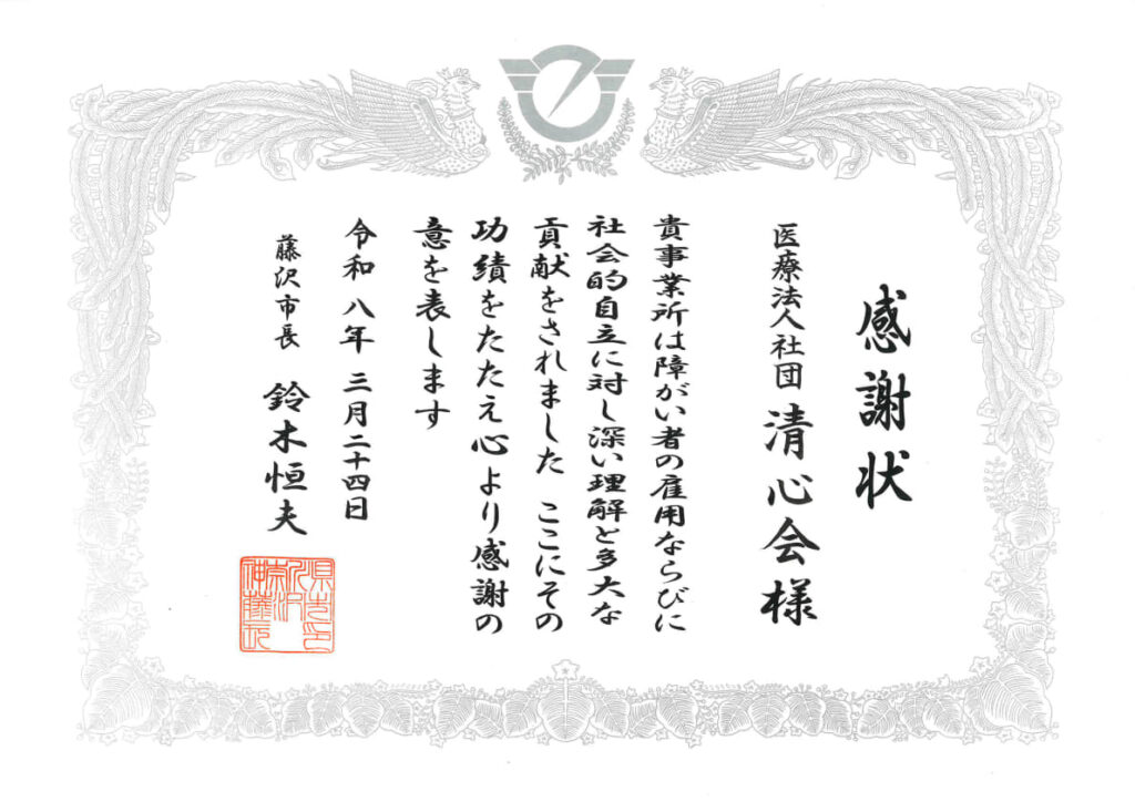 清心会(藤沢病院、清流苑)では、長年、精神障がいの方を中心に働いて頂いております。